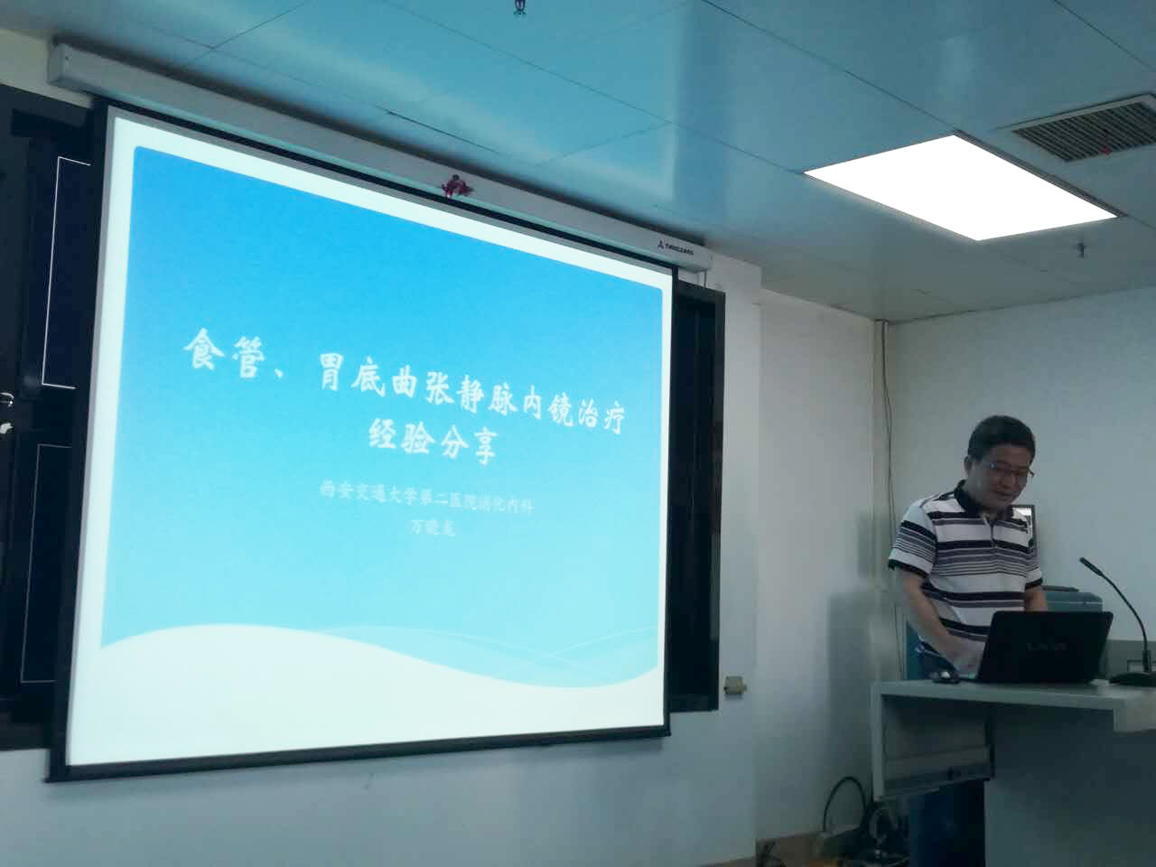 此次会议特邀省外北京地坛医院李坪教授、江西赣州五院梁斌教授、安徽省立医院肖梅教授及省内西安交通大学第二附属医院王进海教授、高新医院宋瑛教授、西安交通大学第一附属医院和水祥教授、陕西省人民医院刘贵生教授等专家就食管胃静脉曲张内镜下硬化治疗技术进展进行专题讲座以及手把手操作演示。